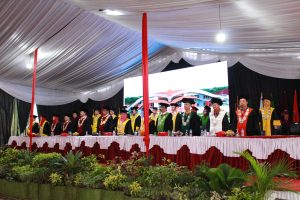 Rektor juga menyampaikan apresiasi dan ucapan terima kasih kepada seluruh panitia, mulai dari dosen, pegawai, hingga staf yang telah bekerja keras dari pagi hingga malam demi kesuksesan acara wisuda.