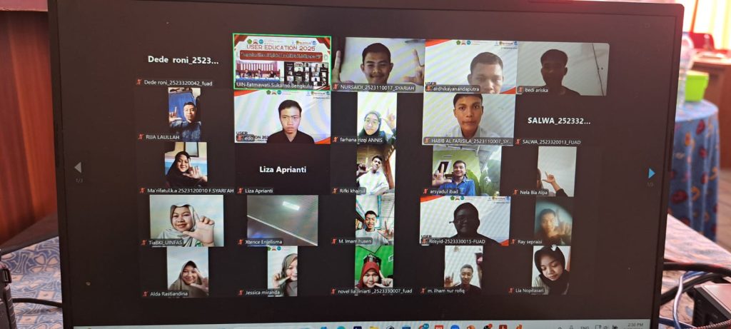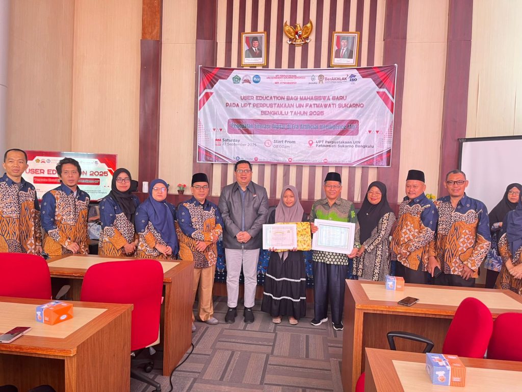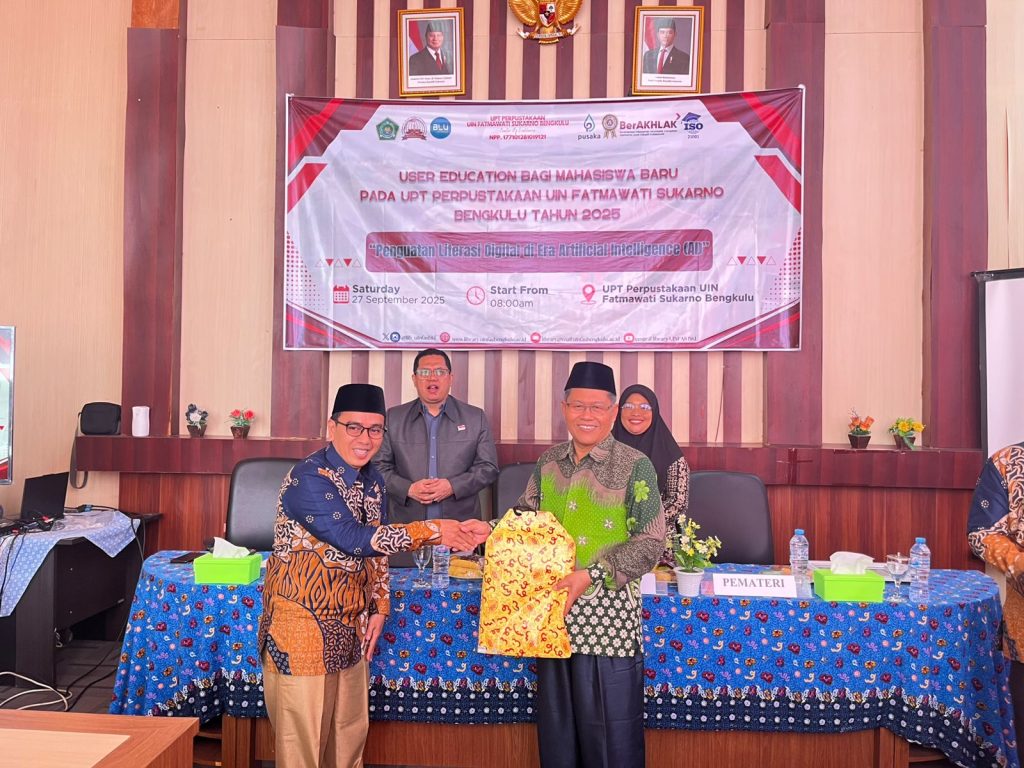 Perpustakaan Universitas Islam Negeri Fatmawati Sukarno (UIN FAS) Bengkulu menyelenggarakan kegiatan User Education dengan mengangkat tema “Penguatan Literasi Digital di Era Artificial Intelligence (AI)”. Kegiatan ini berlangsung pada Sabtu (27/09/2025) di Perpustakaan UIN FAS Bengkulu dengan format gabungan, yakni secara daring dan luring.