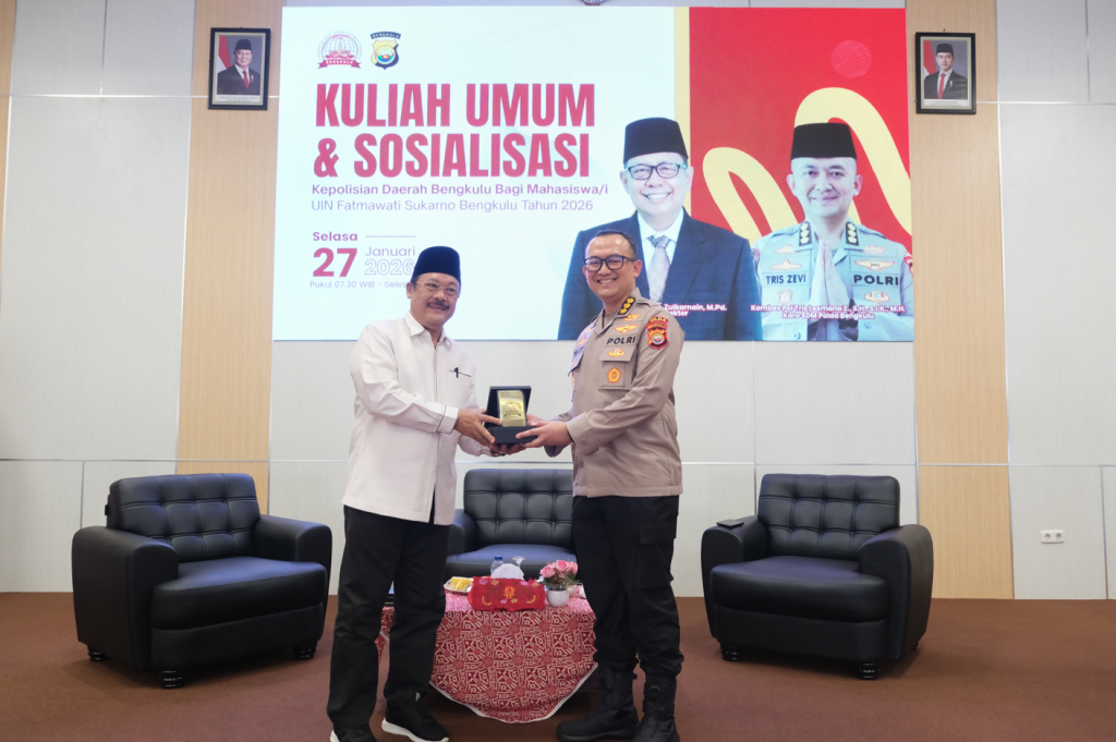 UINFAS Bengkulu — Universitas Islam Negeri (UIN) Fatmawati Sukarno Bengkulu menggelar Kuliah Umum dan Sosialisasi Kepolisian Daerah Bengkulu bagi mahasiswa/i Tahun 2026, Selasa (27/1/2026), bertempat di Gedung Auditorium UIN Fatmawati Sukarno Bengkulu.