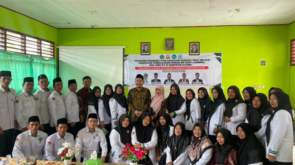 UINFASBengkulu – Universitas Islam Negeri Fatmawati Sukarno (UIN FAS) Bengkulu melalui Tim Pengabdian Masyarakat Program Studi Tadris IPS berkolaborasi dengan Kantor Wilayah Kementerian Agama Provinsi Bengkulu menggelar Pelatihan Perangkat Ajar Kurikulum Berbasis Cinta melalui Pendekatan Pembelajaran Mendalam (Deep Learning) bagi guru IPS di Kabupaten Seluma. Kegiatan ini dilaksanakan di MTsN 2 Seluma dan merupakan bagian dari program hibah kompetitif berbasis program studi LPPM UIN FAS Bengkulu.
